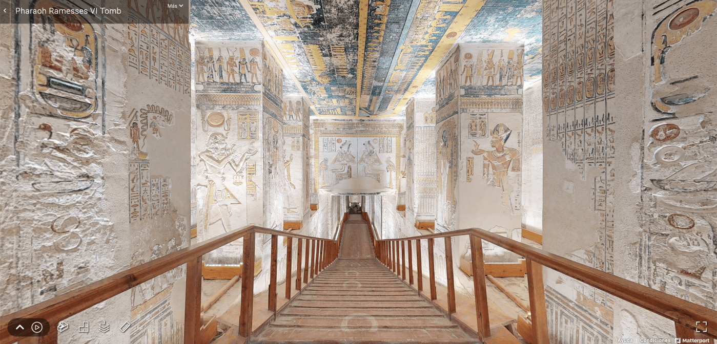 Gracias a Ministerio de Antigüedades y Turismo de Egipto y a la American Research Center in Egypt podemos realizar visitas virtuales en 3D. También es interesante la web Describing Egypt. Se puede acceder desde cualquier dispositivo móvil u ordenador, y las visitas y materiales son gratuitos.