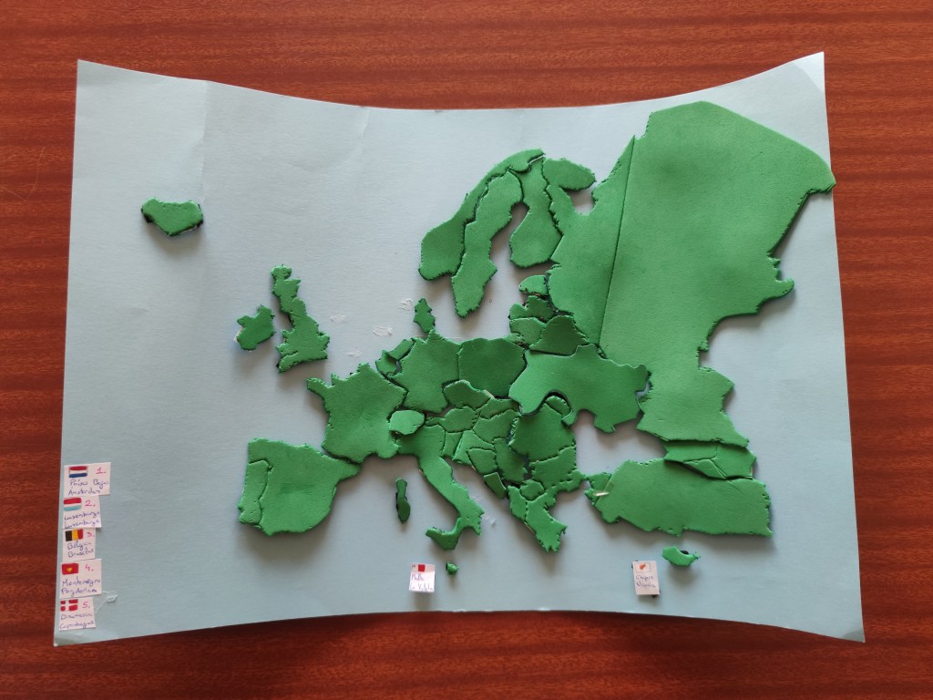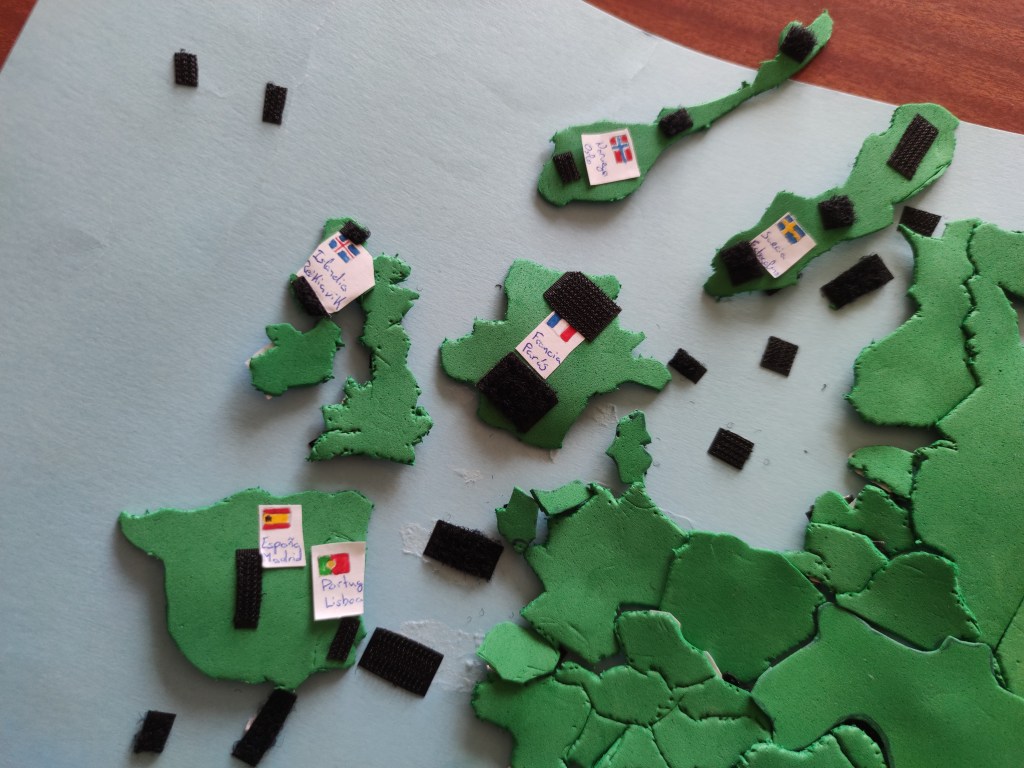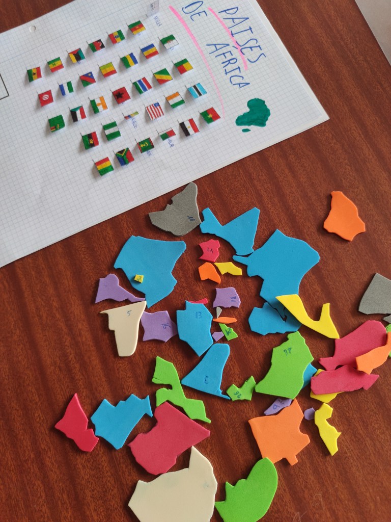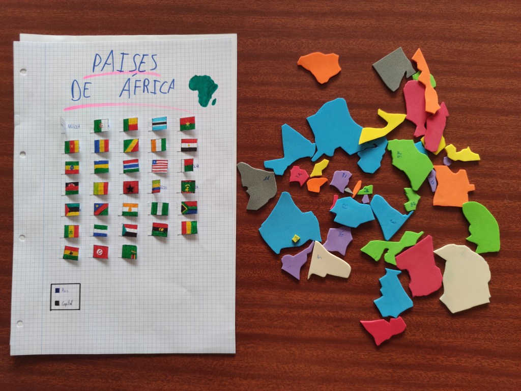 Esta breve actividad está preparada para trabajar los mapas políticos, las banderas y las capitales de todos los países. Una manualidad en la que el alumnado puede demostrar su creatividad. Estos puzzles se realizaron en 1º ESO en la asignatura de Geografía e Historia. Los trabajos fueron muy variados. Desde puzzles al uso, a mapas completos con velcro para para unir las fichas o piezas decoradas con las banderas totalmente.