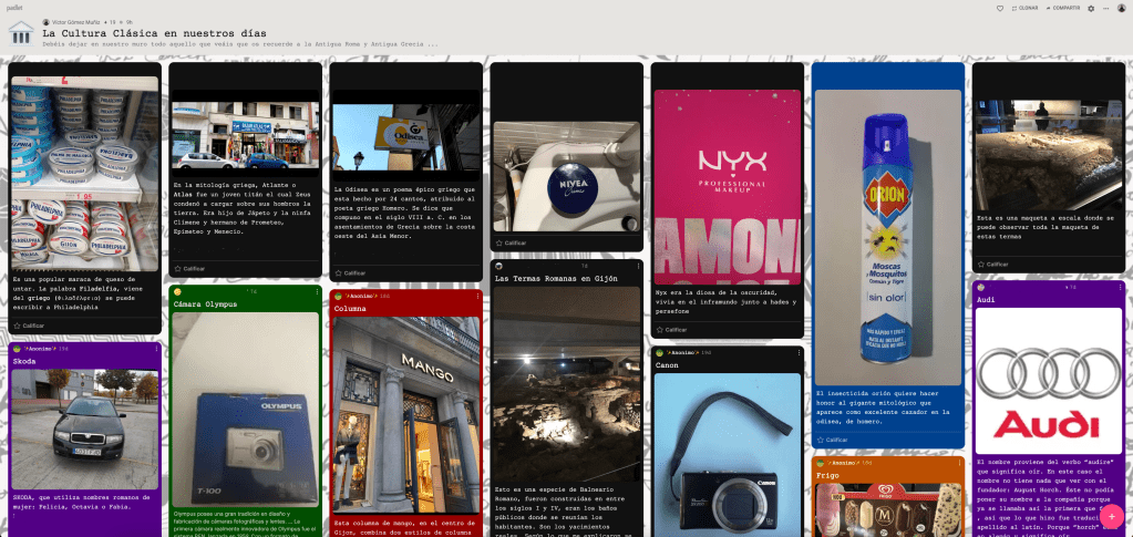 ¿Os imagináis un trabajo colaborativo para estudiar la herencia de la cultura grecolatina en nuestros días? A través de la plataforma digital PADLET podremos crear un mural colaborativo con nuestro alumnado de 2º ESO en el que se vayan mostrando a través de fotos y pequeños textos estas herencias de la cultura clásica en la actualidad.