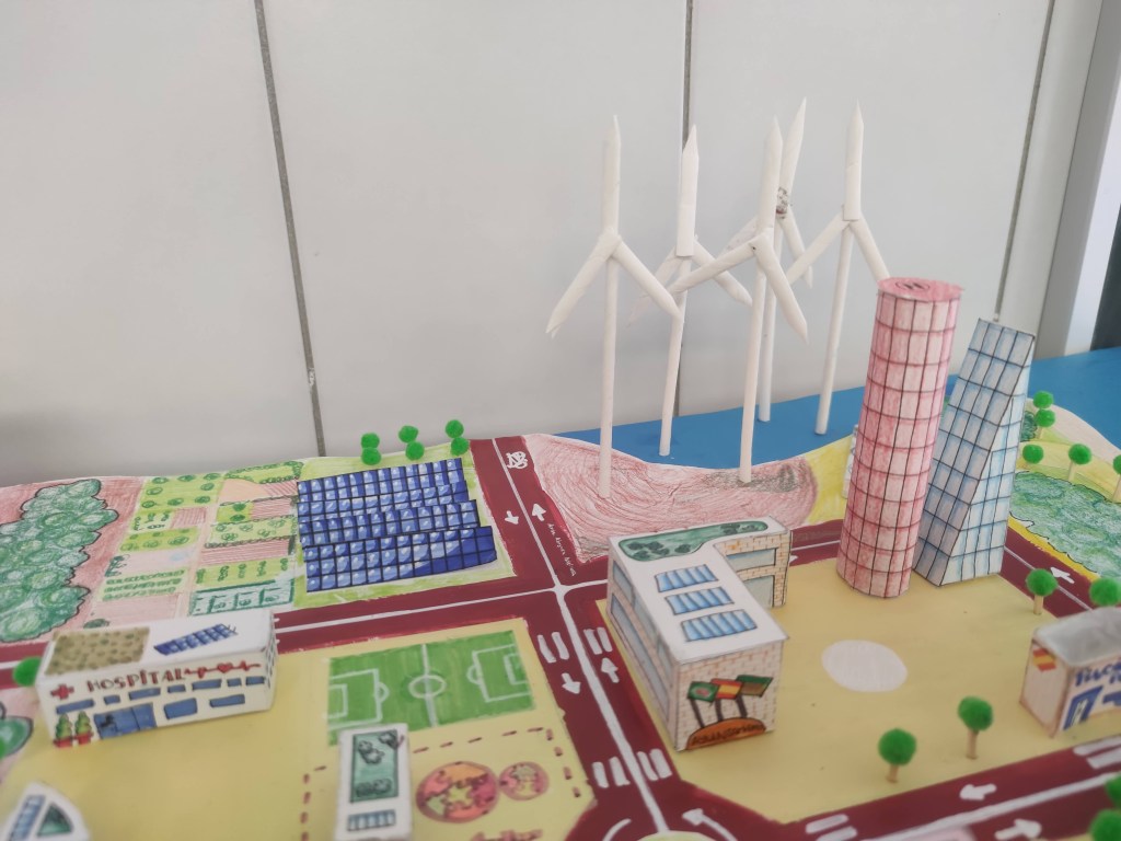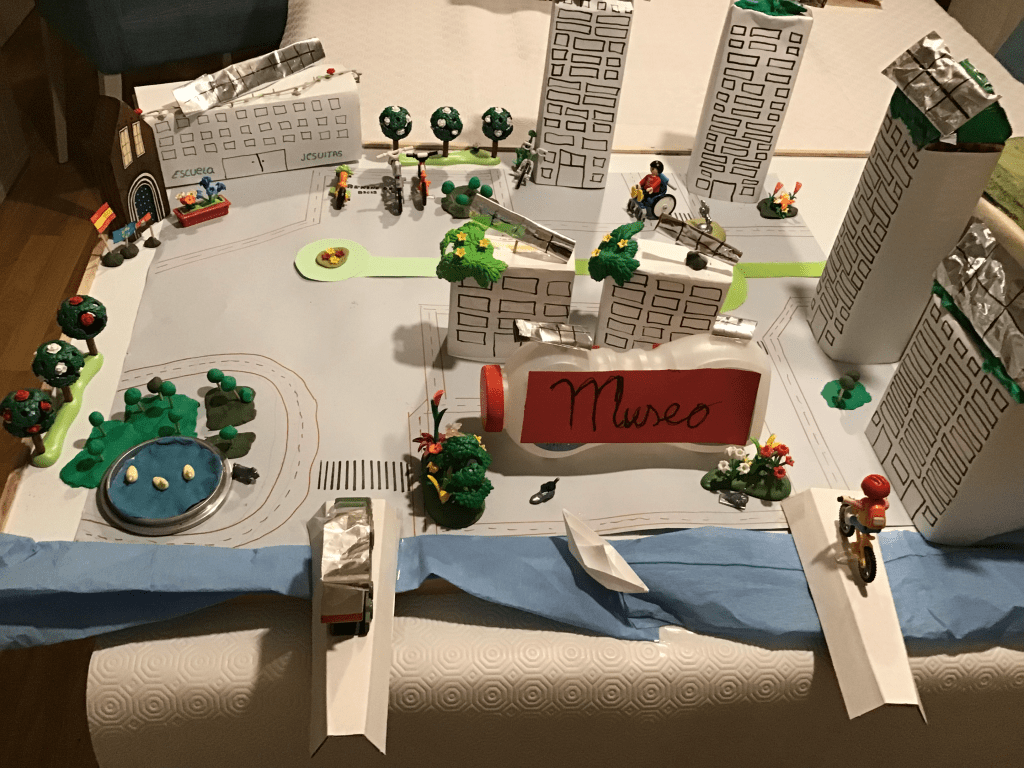 Posteriormente, la actividad se divide en dos partes: una teórica y una práctica. La teórica es la creación de una presentación en vídeo en Flipgrid o de forma presencial en el aula. Y, la parte práctica, la recreación de esa ciudad ideal-sostenible en una maqueta, utilizando materiales reciclados. ¡Incluso los test de antígenos han servido para sus creaciones! Un detalle del tiempo en el que vivimos.