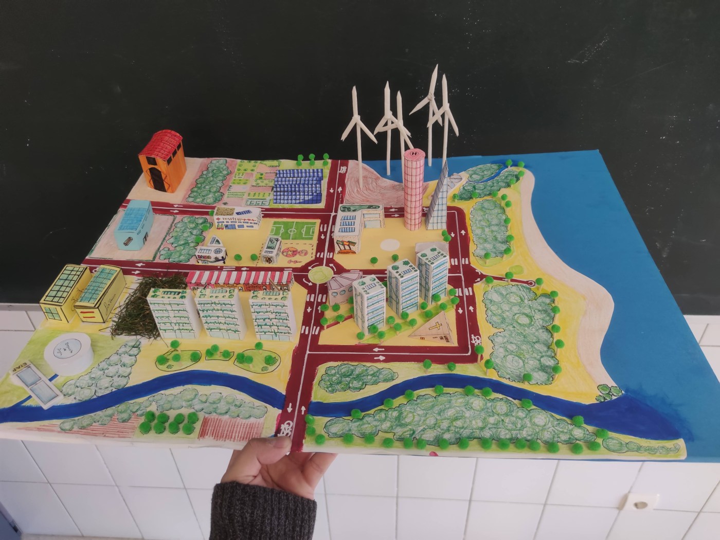Posteriormente, la actividad se divide en dos partes: una teórica y una práctica. La teórica es la creación de una presentación en vídeo en Flipgrid o de forma presencial en el aula. Y, la parte práctica, la recreación de esa ciudad ideal-sostenible en una maqueta, utilizando materiales reciclados. ¡Incluso los test de antígenos han servido para sus creaciones! Un detalle del tiempo en el que vivimos.