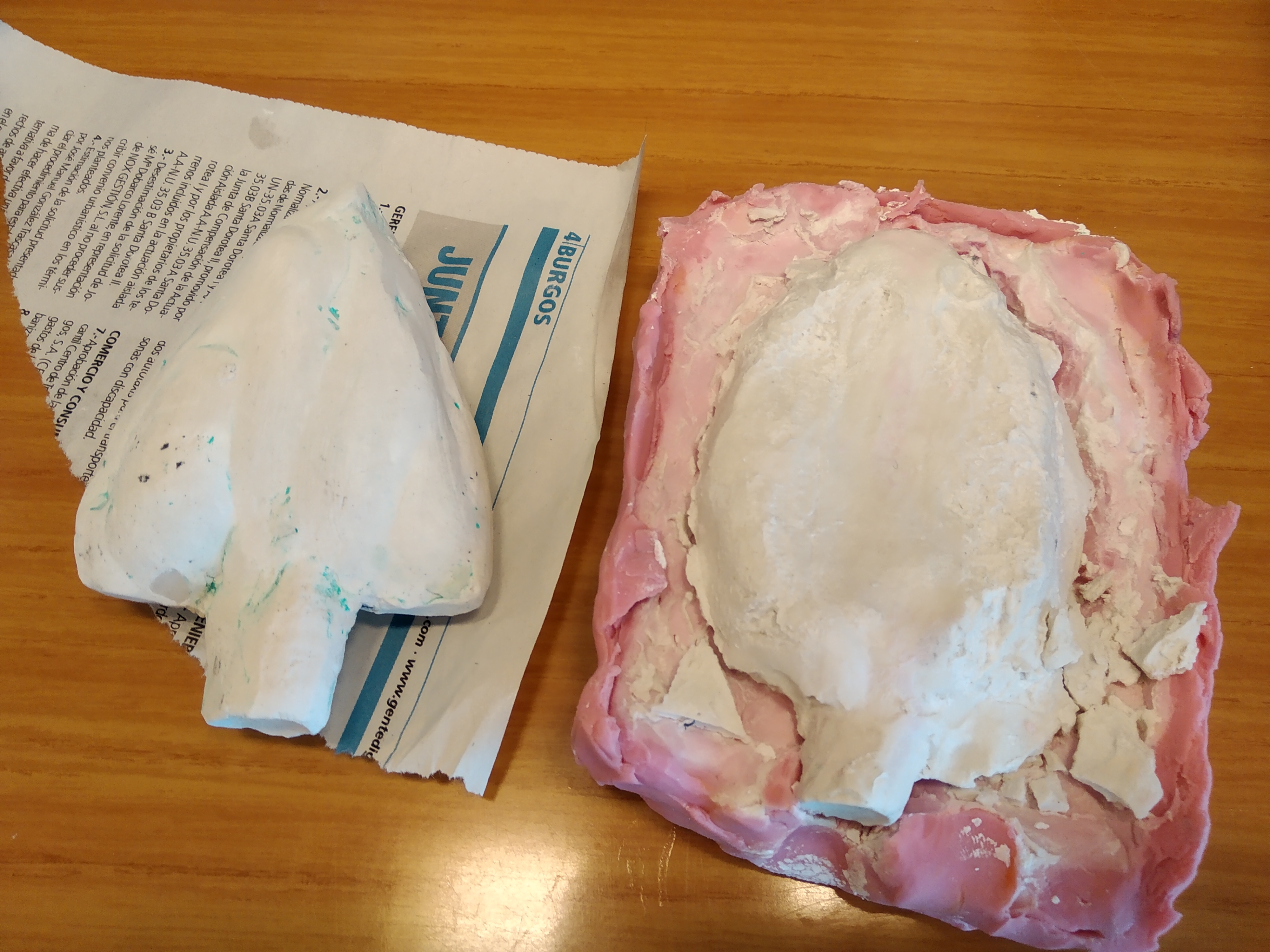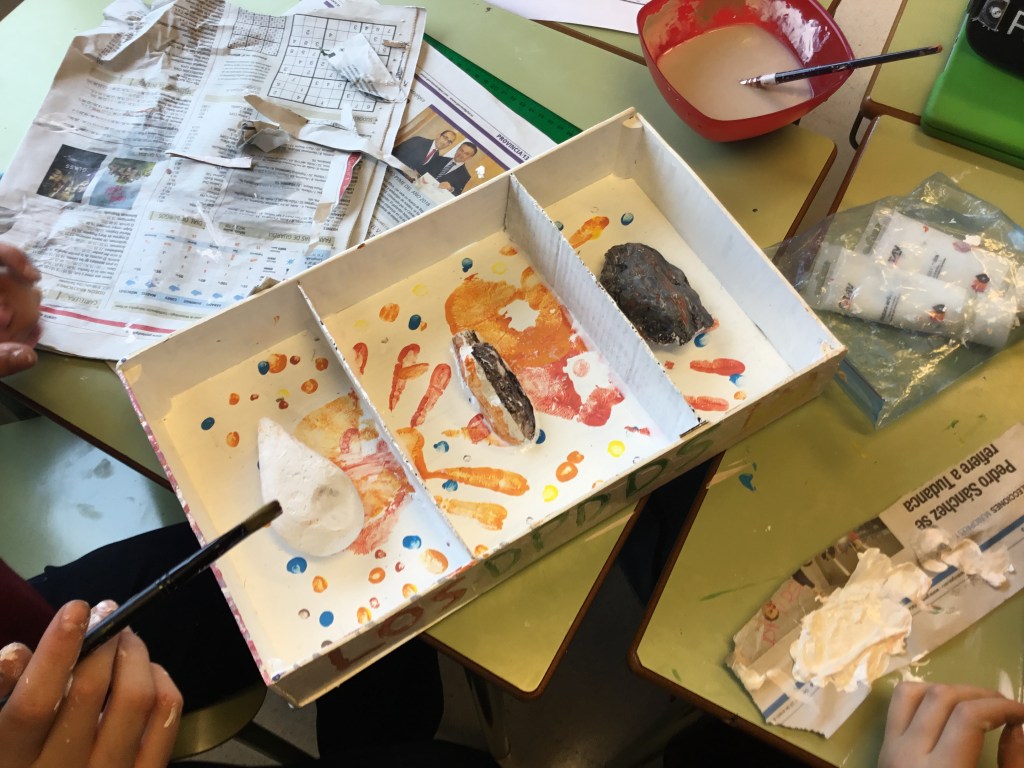 Segunda parte: CREACIÓN. A partir del esquema realizado, bien en plastilina directamente o creando el molde en plastilina y posteriormente rellenándolo de escayola líquida. Esta segunda opción es mucho más “engorrosa” en el aula, pero tiene mayor atractivo.