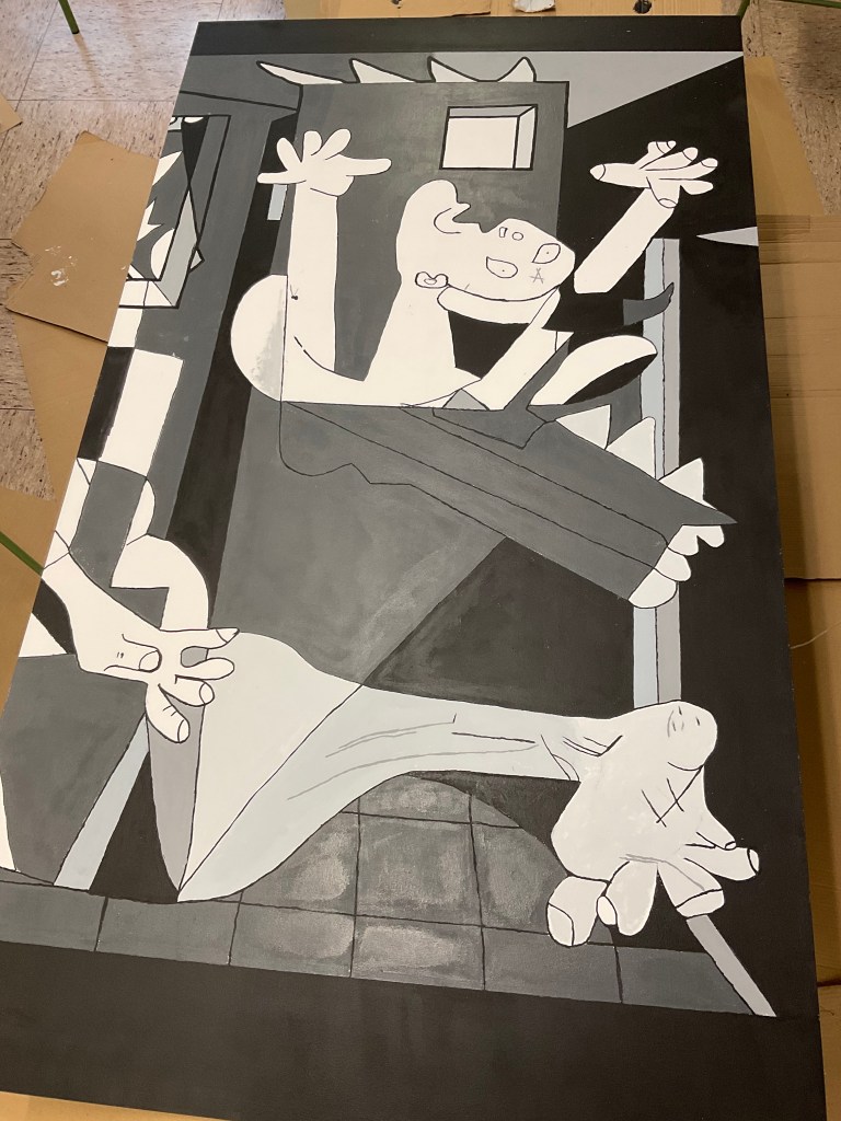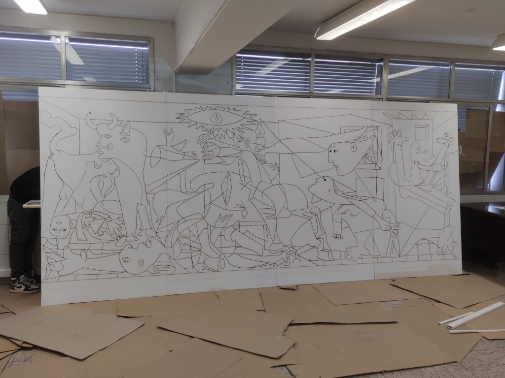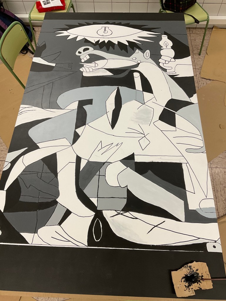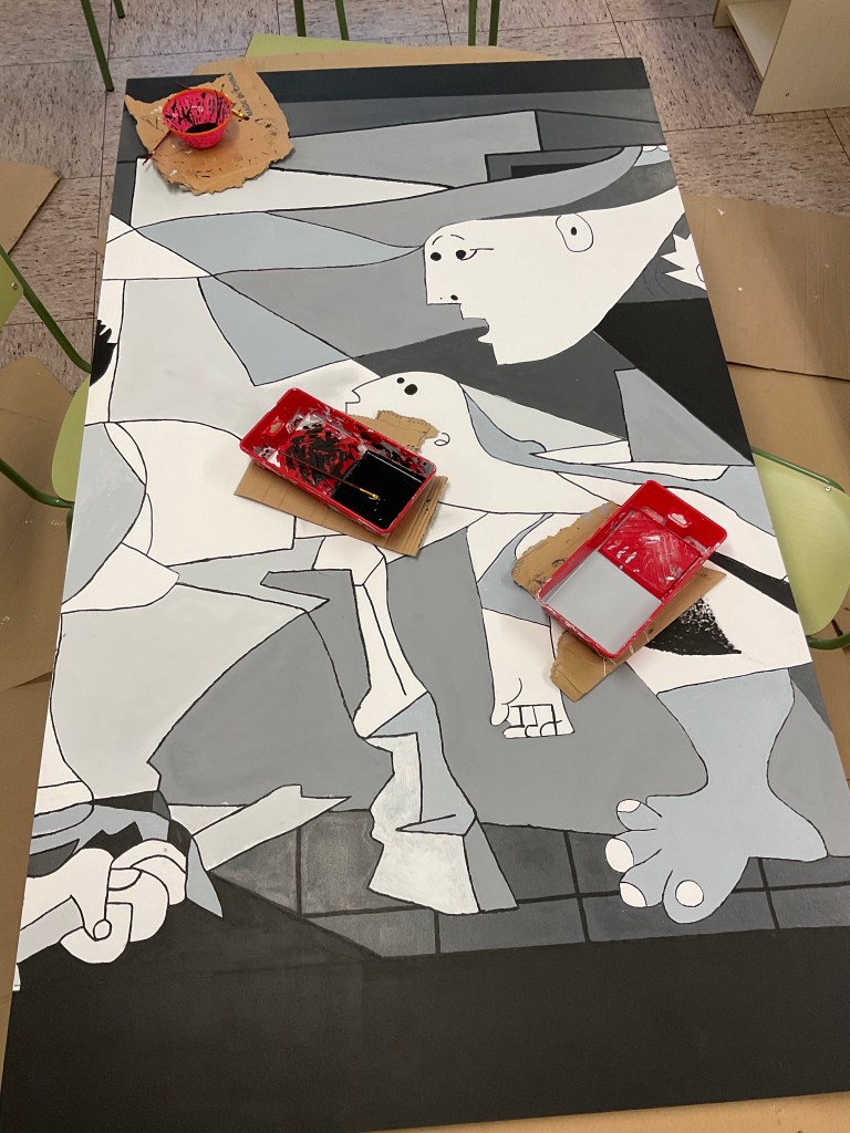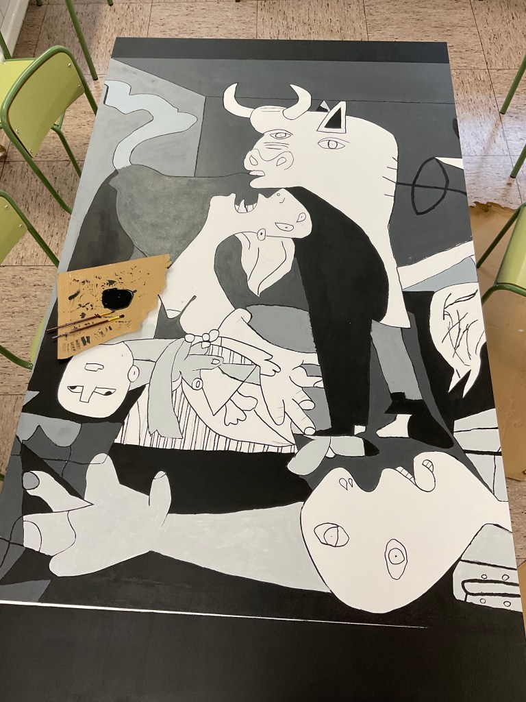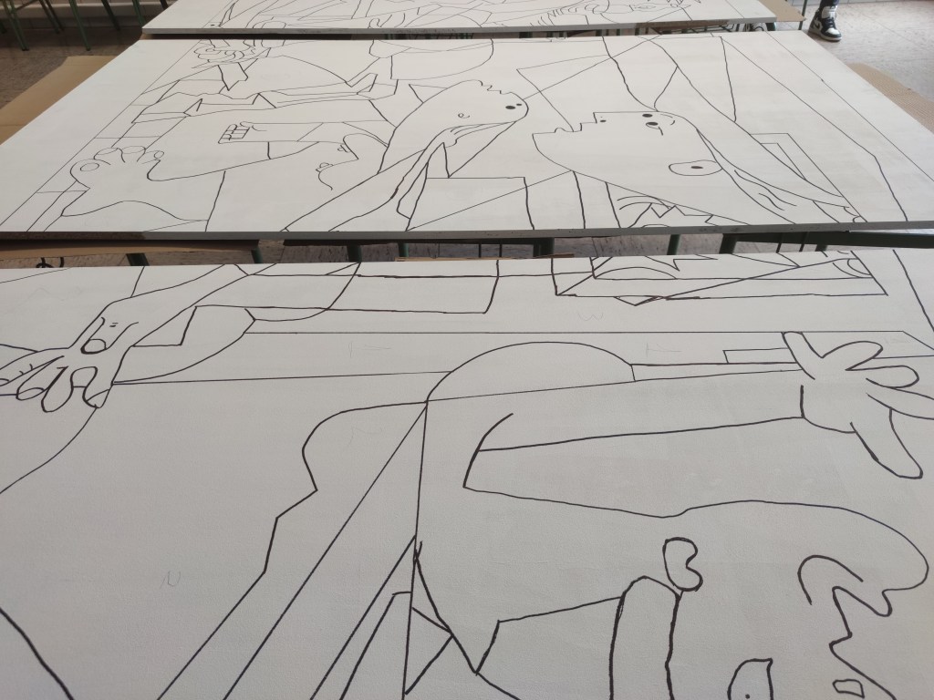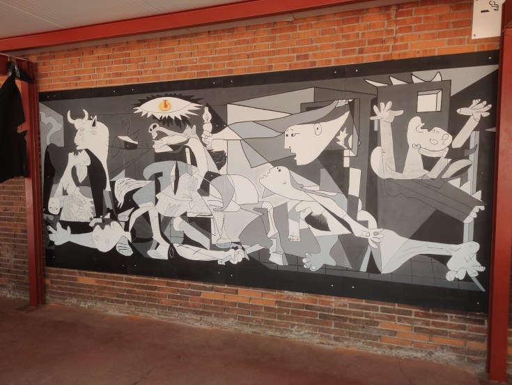 Guernica 2022 es el primer paso del proyecto “El arte en nuestro patio” consiste en la realización de unos murales de forma colectiva en el patio del colegio. Proyecto colaborativo llevado a cabo por el alumnado de FP Básica, un servicio al centro educativo con la decoración de un espacio común, un aprendizaje servicio. El proyecto pretende trabajar valores como la perseverancia, la creatividad y el trabajo en equipo, entre otros. De forma conjunta y progresiva.
