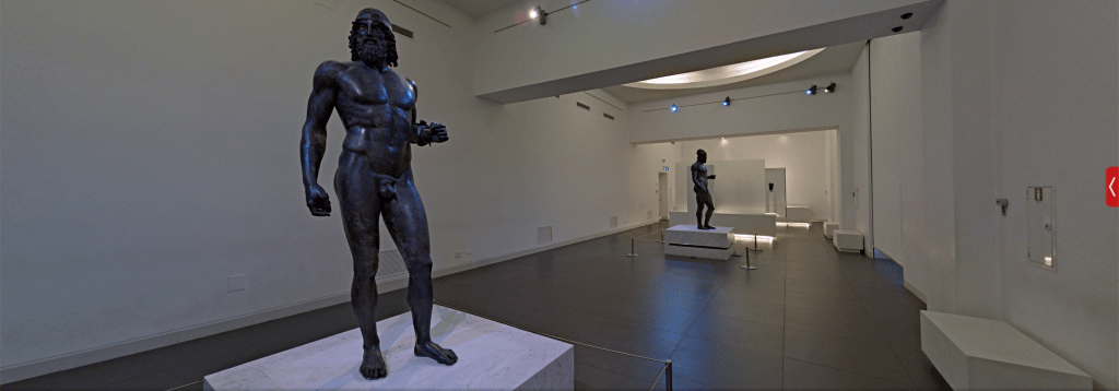 Dos de los mejores ejemplos de escultura griega en bronce fueron encontrados en Riace, provincia de Regio Calabria en 1972 bajo el mar. Se les conoce como los Bronces de Riace y se trata de dos figuras masculinas, realizadas en bronce con la técnica de la cera perdida. Representan a un joven (bronce A) y un anciano (bronce B) creadas en el siglo V a.C.