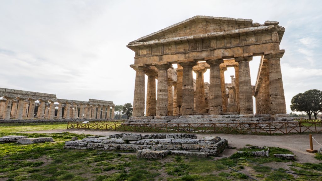 Comenzamos en la Magna Grecia, visitando los Templos de Paestum. En los restos de la ciudad grecorromana de Paestum encontramos los templos dóricos dedicados a Hera, Ceres y a Poseidón (actualmente se que sabe que era dedicado a Apolo). Ubicados en el golfo de Salerno, al estar cubiertos durante largos de periodos de tiempo por las marismas, se puede afirmar que son los templos mejor conservados de la Grecia Clásica.