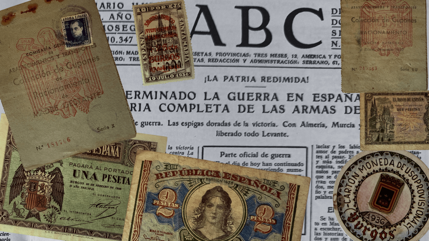 El dinero es un objeto cotidiano que se transforma radicalmente en tiempos de conflicto. Los billetes resellados, las emisiones paralelas de ambos bandos y la moneda de cartón muestran el colapso del orden económico y la coexistencia de múltiples poderes que reclaman legitimidad. Desde una perspectiva iconográfica, la comparación de símbolos, lemas y retratos en los distintos billetes permite analizar las culturas políticas enfrentadas. El alumnado puede observar cómo la propaganda y la identidad política se inscriben en un objeto tan aparentemente neutro como una pieza de papel o cartón.